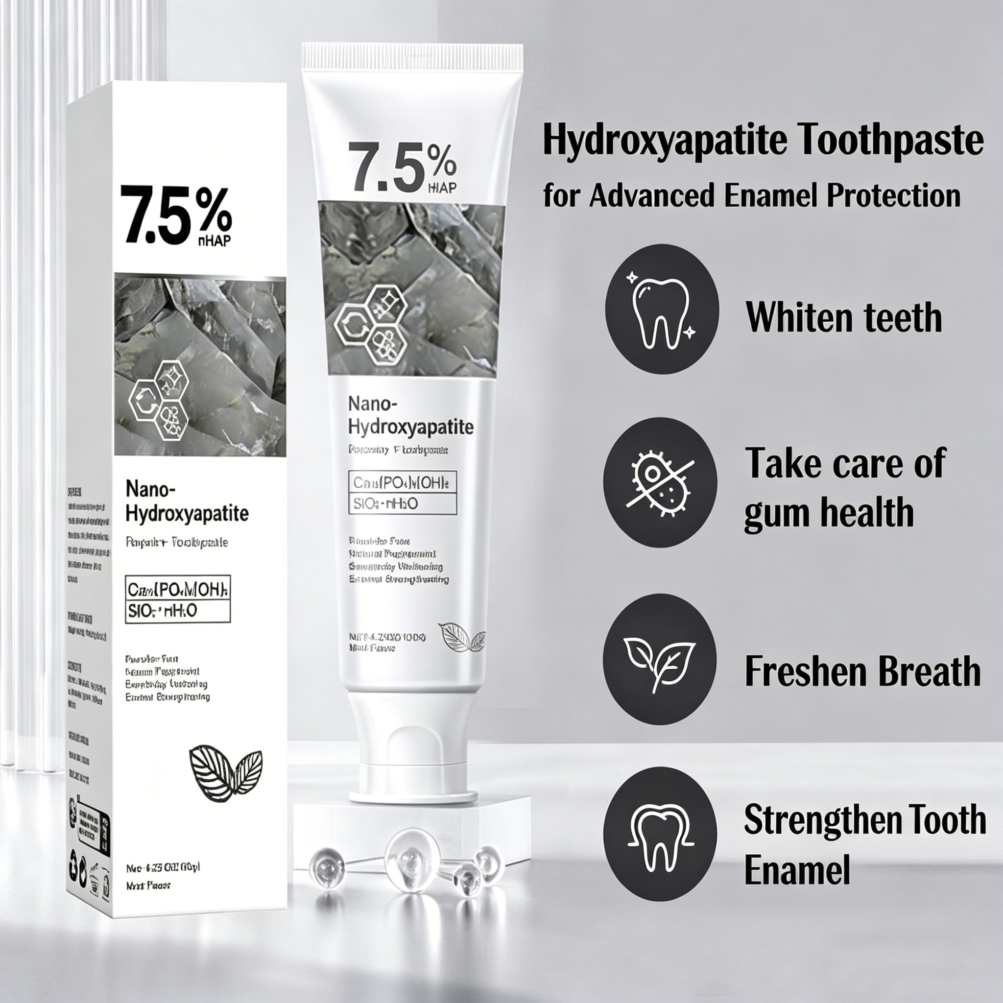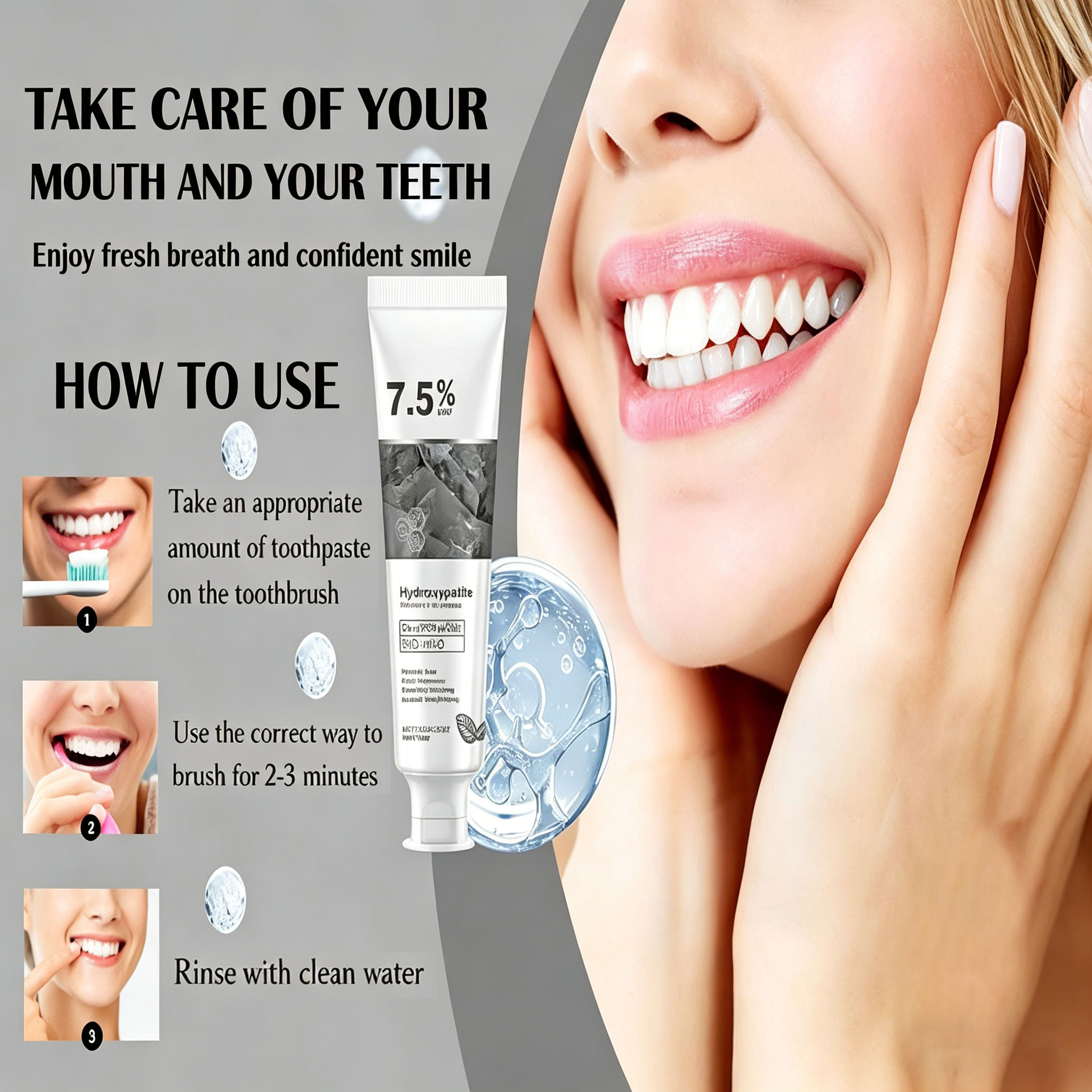 Hydroxyapatite Toothpaste can effectively remove the source of bad odor in the mouth and keep the mouth fresh by improving the surface environment of the teeth and reducing bacterial growth while cleaning the teeth