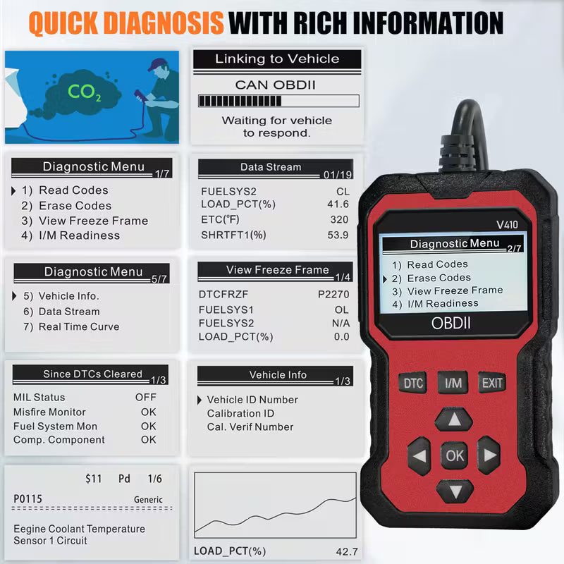 Advanced OBD II Scanner Car Engine Fault Code Reader CAN Diagnostic Scan Tool