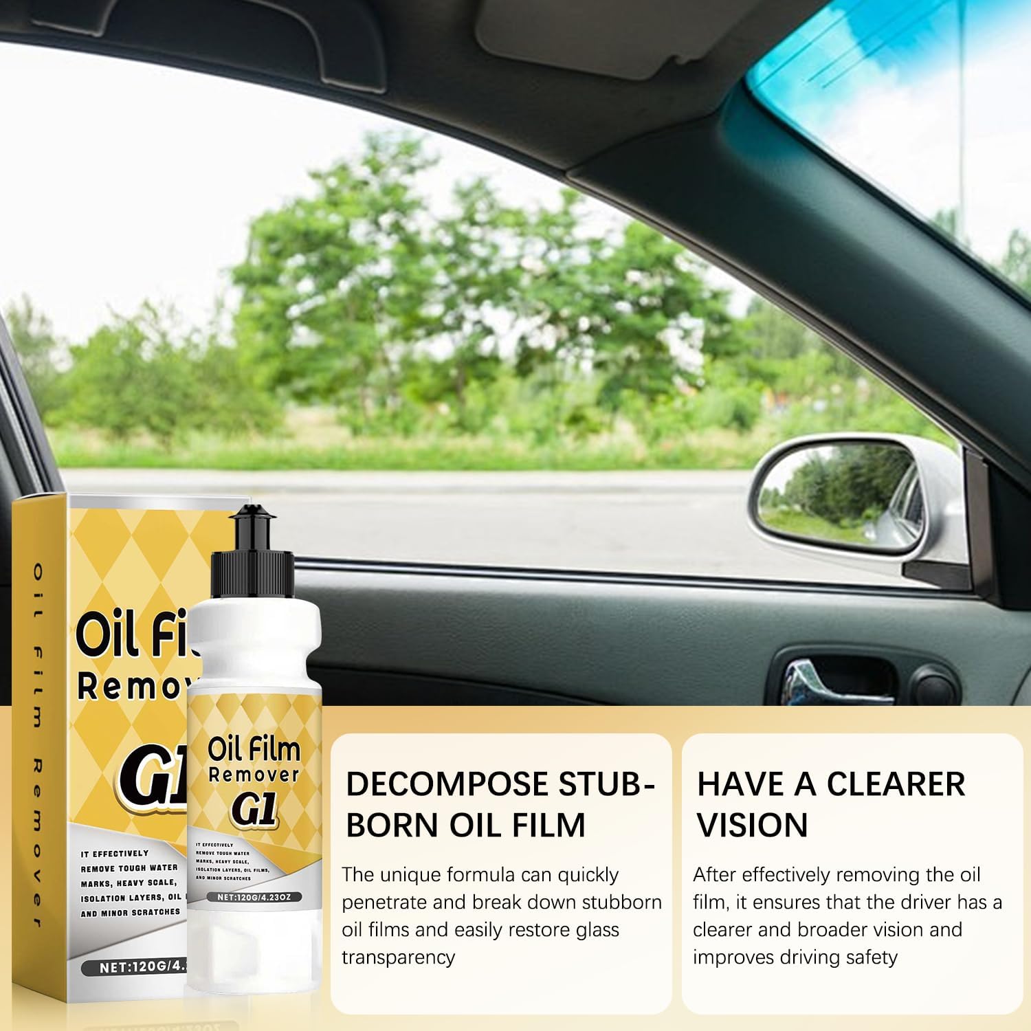 G1 Car Glass Polishing Compound & Oil Film Remover for Removing Water Spots, Road Oils, Windshield Haze